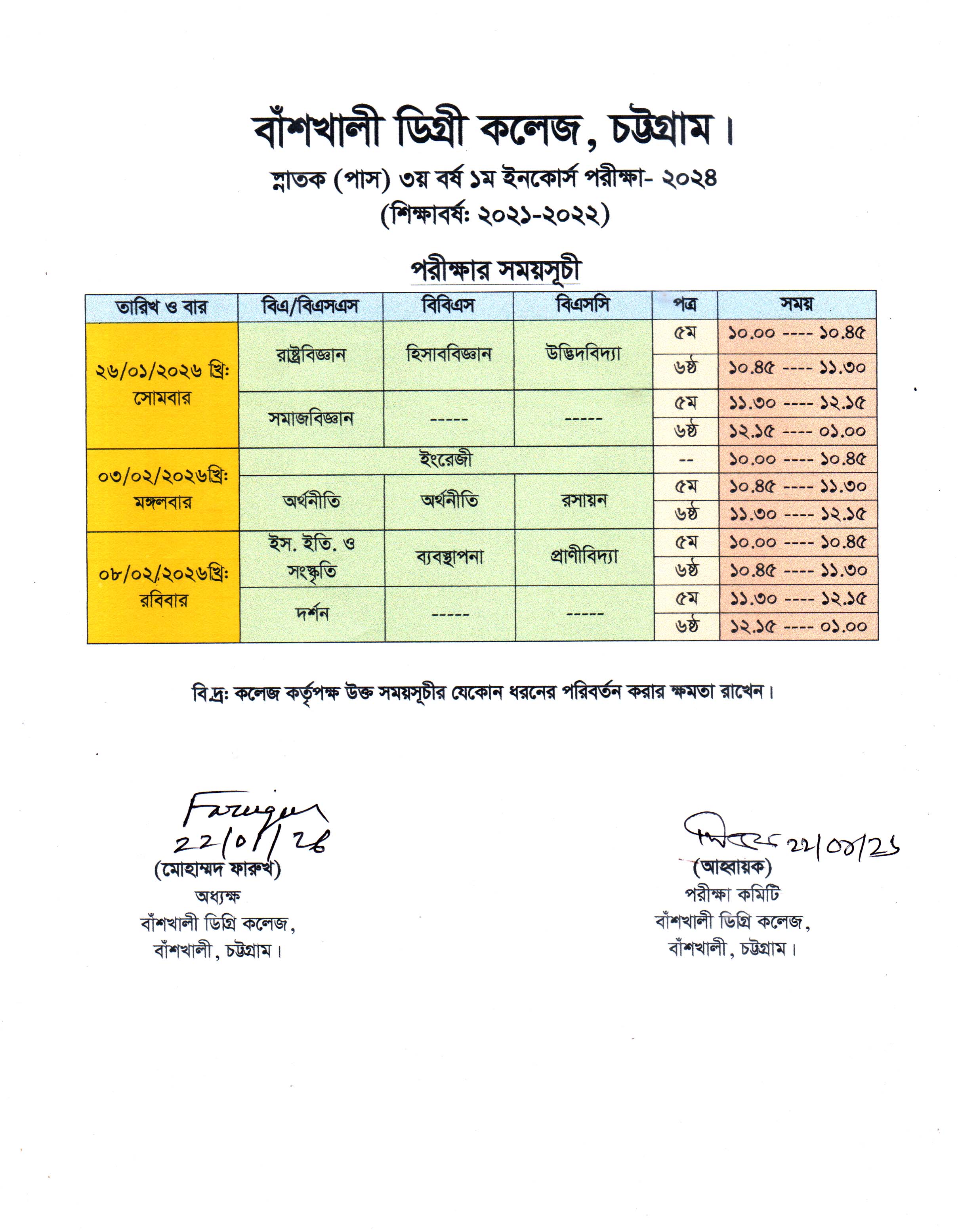 01/22/2026 স্নাতক (পাস) ৩য় বর্ষ ১ম ইনকোর্স পরীক্ষা-২০২৪ এর সময়সূচী