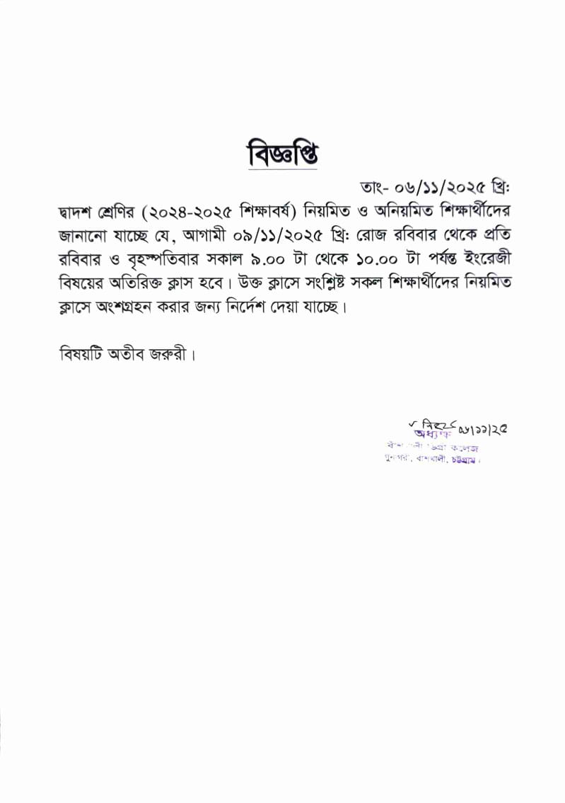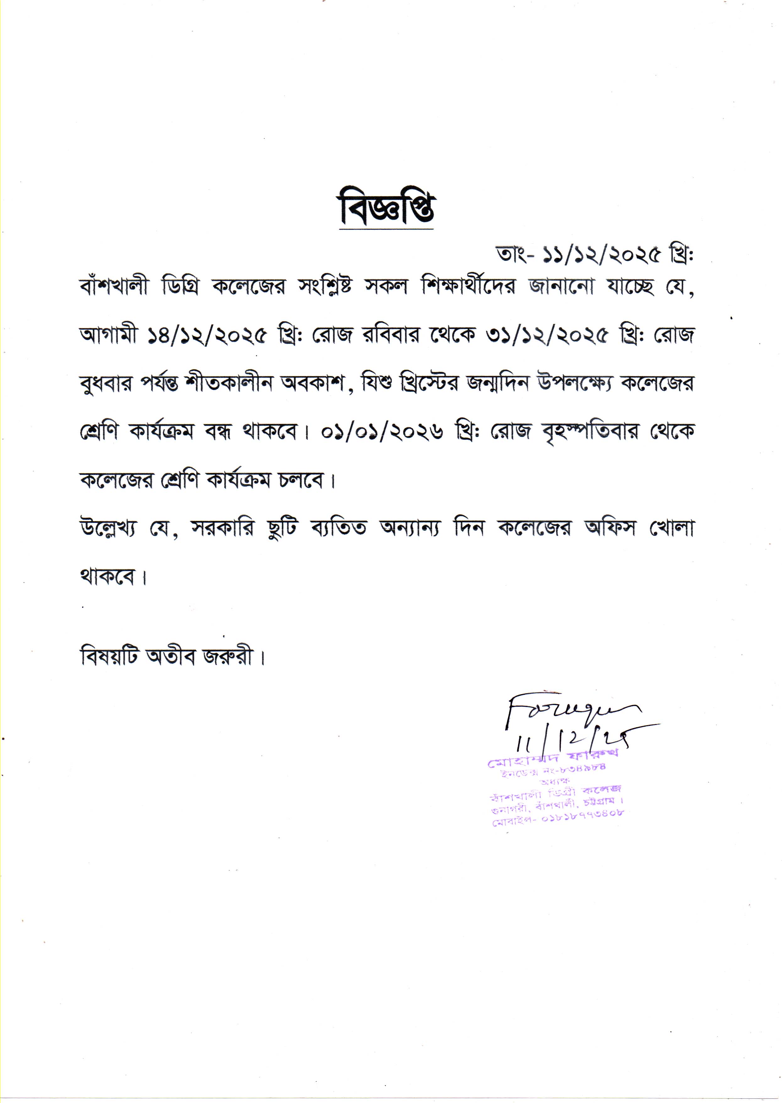 10/19/2025 কলেজ বন্ধের নোটিশ